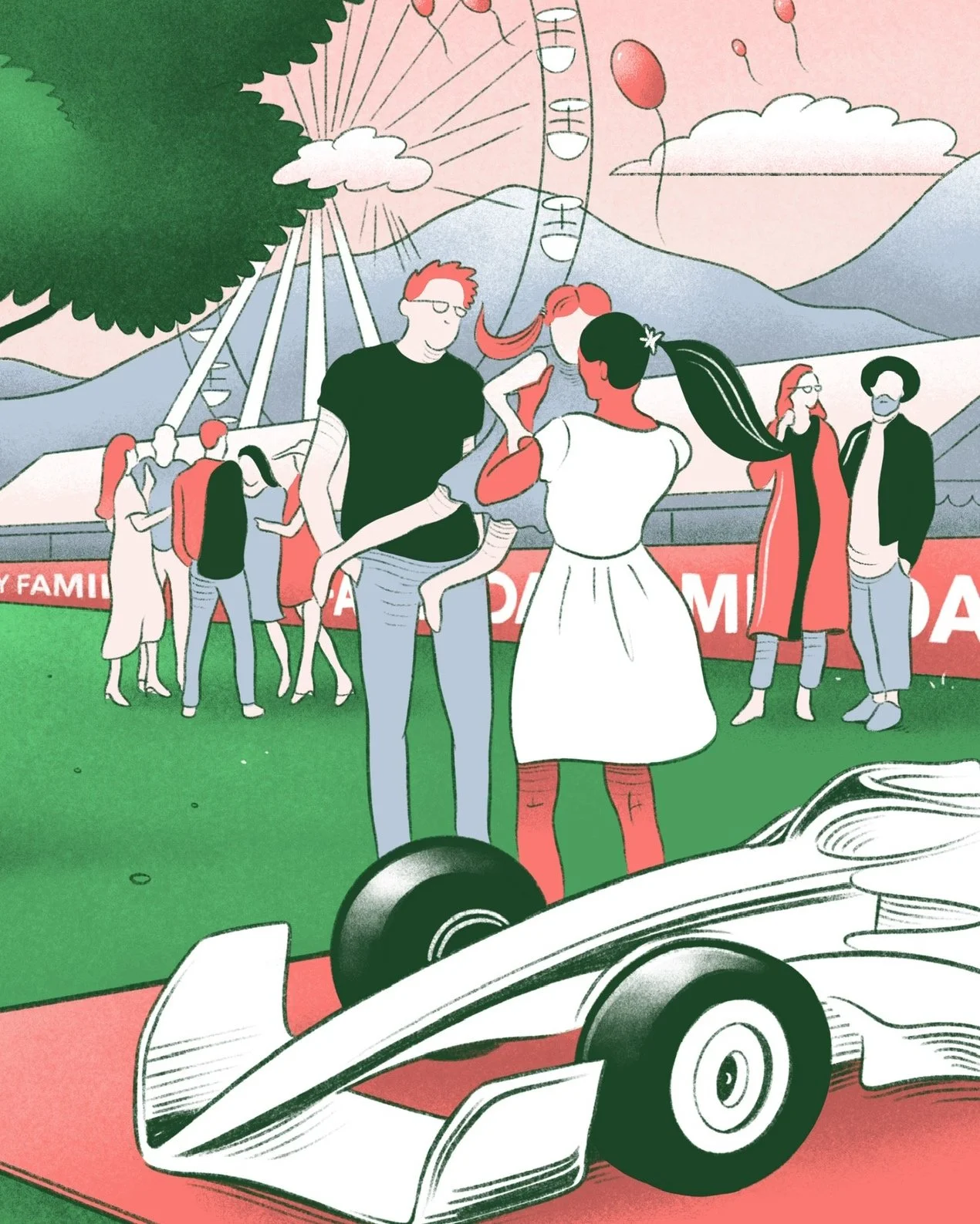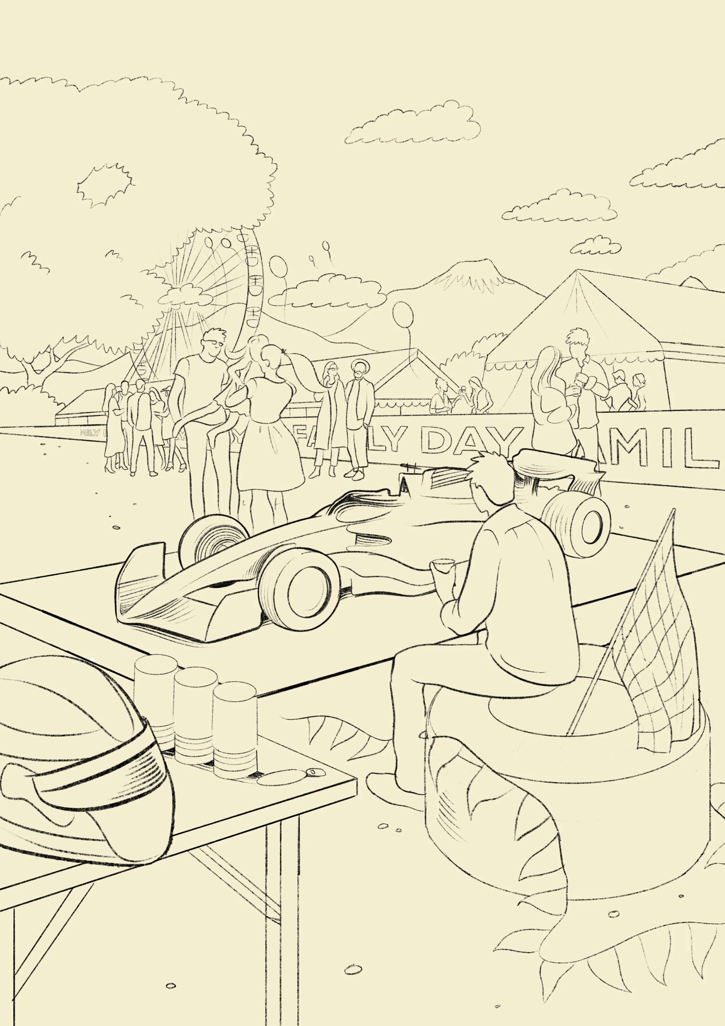 I created a key visual for Sauber Motorsport’s Family Day, capturing the spirit of community, excitement, and racing. The illustration was designed to bring a playful and dynamic energy to the event, appealing to both motorsport fans and their families.